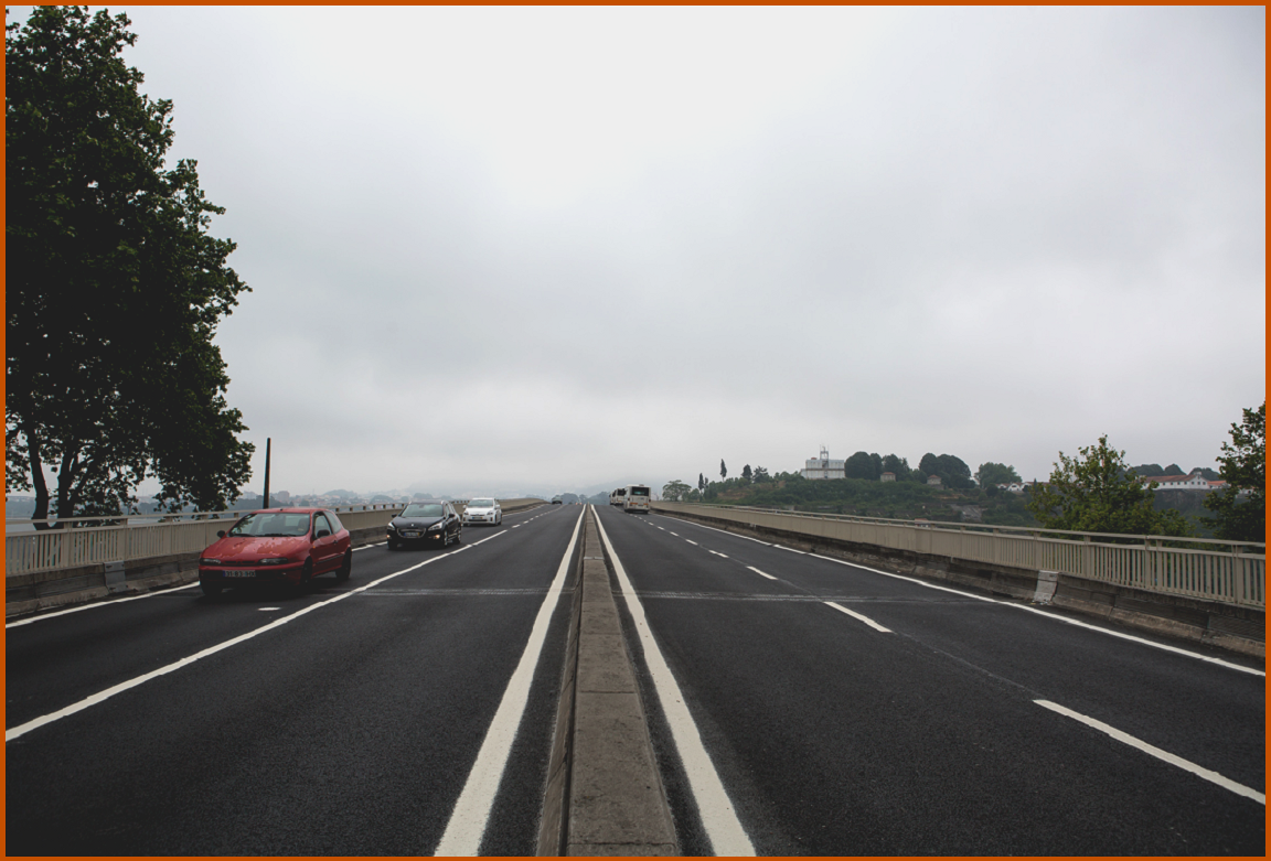 E cá estamos nós na estrada marginal do Porto, junto à Ponte da Arrábida.